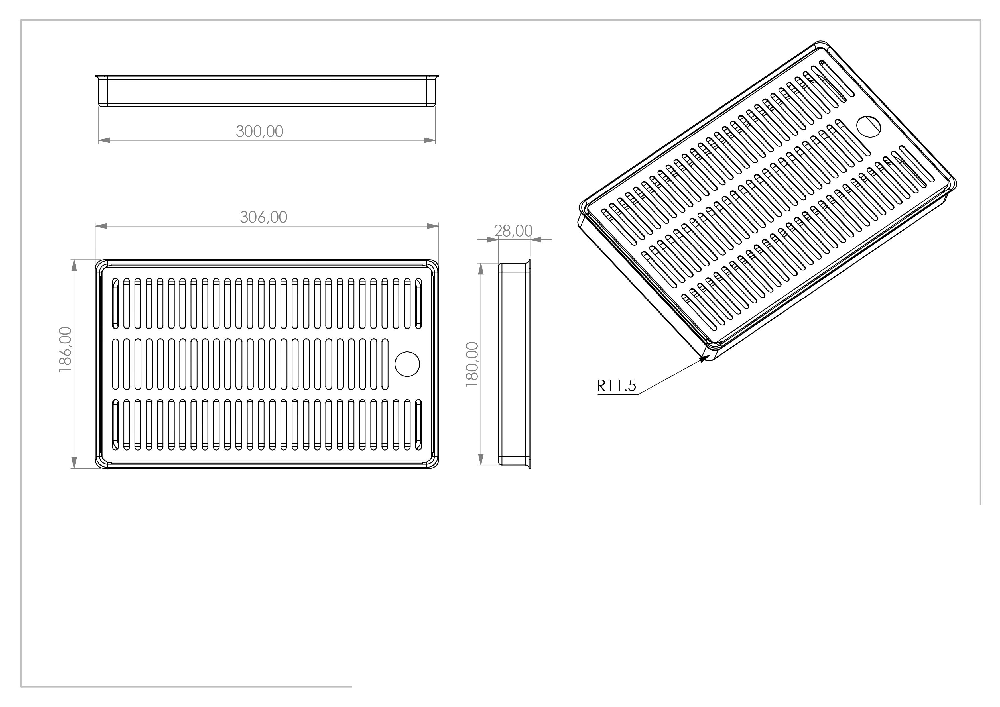 RVS lekbakje, afmetingen opbouw 300 x 180 mm.