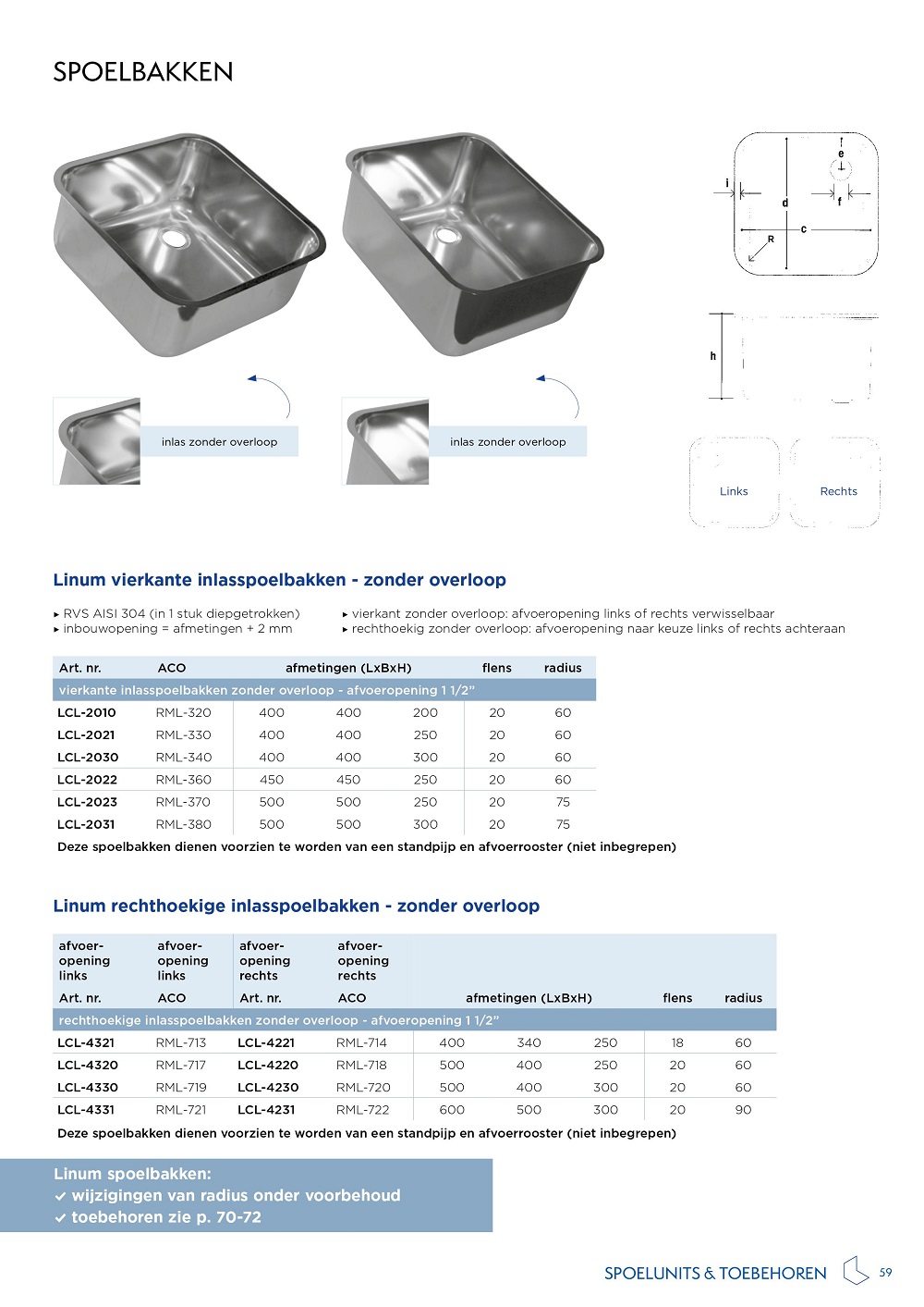 Linum LCL-2022 Comfort Line, vierkante inlasspoelbak zonder overloop.